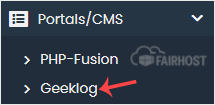 4. På venstre side skal du finde kategorien Portal/CMS. Klik på den og derefter på linket Geeklog, der vises.