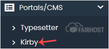 4. På venstre side skal du finde kategorien Portal/CMS. Klik på den og derefter på linket Kirby, der vises.