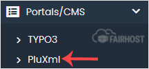 4. På venstre side skal du finde kategorien Portal/CMS. Klik på den og derefter på linket PluXml, der vises.