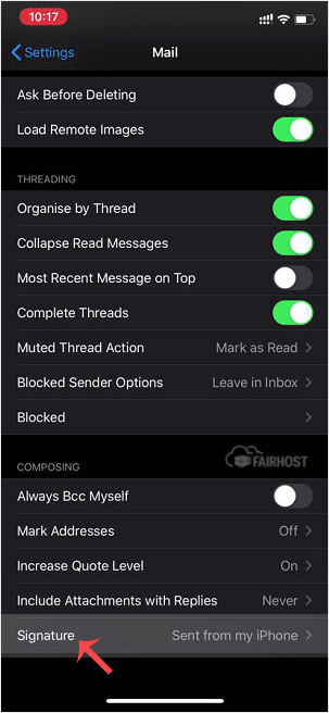 Efter at have ændret den, vil din iOS sende din tilpassede signatur i stedet for standardsignaturen.