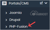 4. På venstre side, find Portal/CMS-kategorien. Klik på den og derefter på det link, der vises med PHP-Fusion.