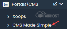 4. På venstre side, find Portal/CMS-kategorien. Klik på den og derefter på CMS Made Simple-linket, der vises.