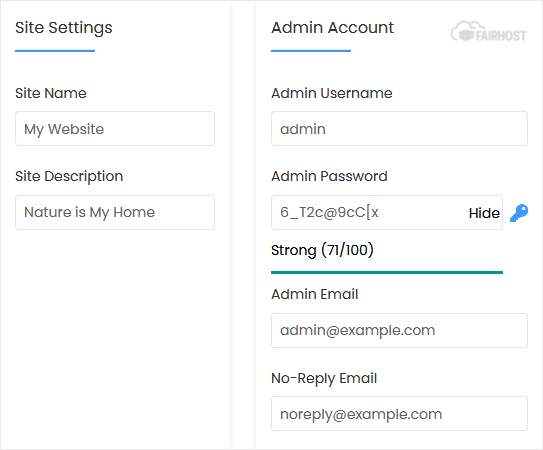 • Admin Username: Dit nye Geeklog-brugernavn (af sikkerhedsmæssige årsager må du ikke bruge administrator eller admin som brugernavn).