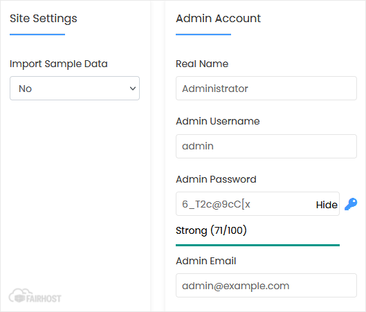 - Import Sample Data: Vælg Nej, eller du kan lade dette være som det er.